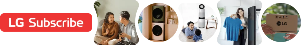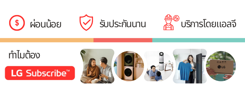 ใช้งานเครื่องใช้ไฟฟ้า LG ได้อย่างง่ายดายกับ LG Subscribe ให้คุณสามารถเป็นเจ้าของสินค้า LG ได้ แม้จะเป็นสินค้าราคาพรีเมียมก็ไม่มีปัญหาด้วยบริการแบบรายเดือน (Subscribe) เช่น ตู้ถนอมผ้า LG Styler ที่ให้คุณทำความสะอาดเสื้อผ้าได้อย่างสะดวกสบาย